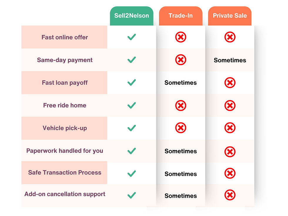 We make selling a car safe and fast. We bring you a check and pick up the car.